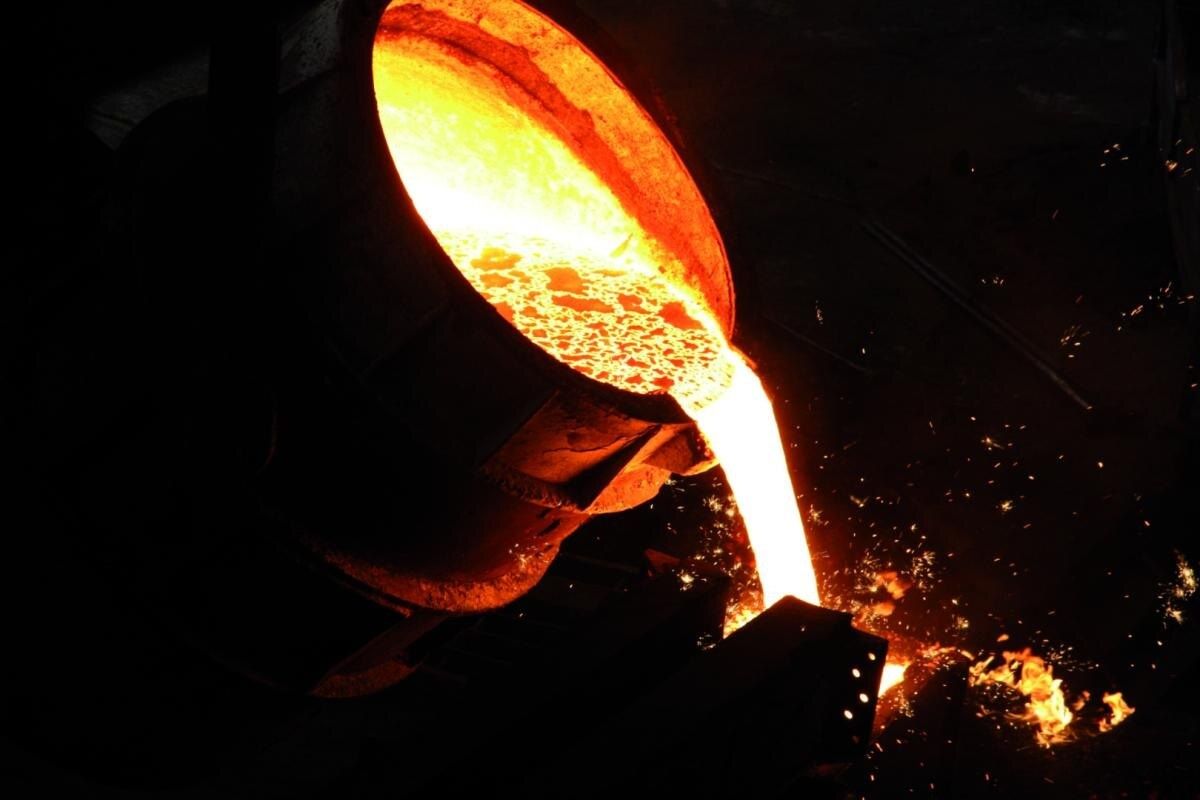 Железо выплавляют при температуре выше 1500 °C, легируют углеродом, превращают в стальной профиль.