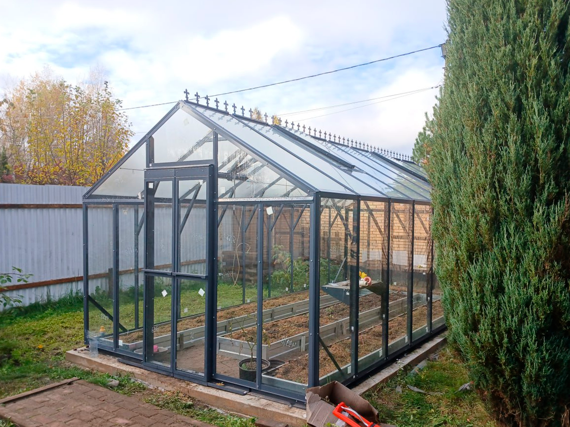 Теплица «Гарденикс PRO» — это современное решение для тех, кто ценит и красивый внешний вид, и комфорт в выращивании растений. Она сочетает элегантный классический стиль с двускатной крышей и функциональной конструкцией, обеспечивающей комфортный микроклимат внутри и удобство ухода за посадками.
