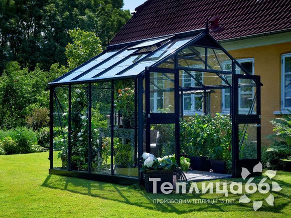 Это теплица премиум класса, изготовленная из поликарбоната, собранная на алюминиевом каркасе, которая пользуется высоким спросом на рынке.